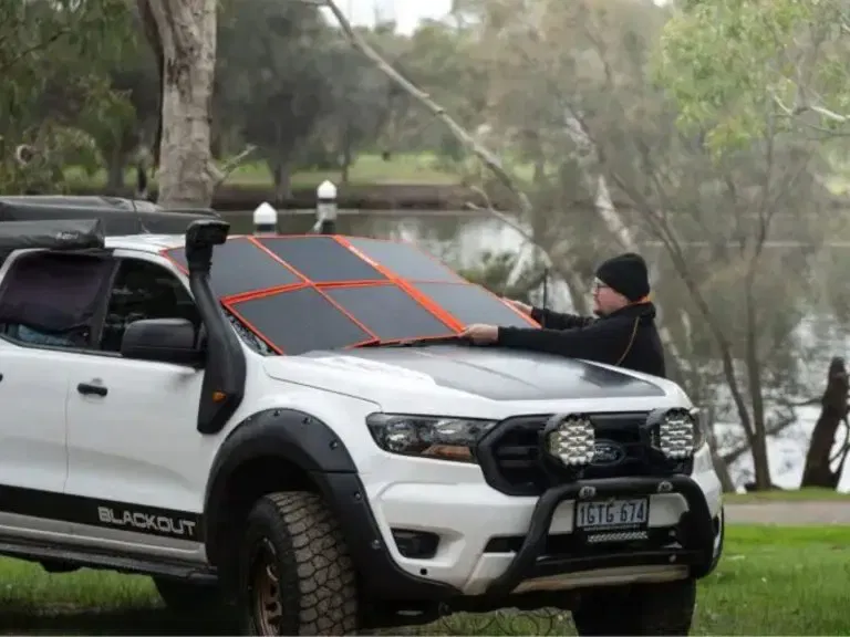 Built for efficiency in a portable form, the 200w solar mat delivers reliable, off-grid power wherever you are: on the road, at camp, or in the field. Designed in Australia, it combines high-output monocrystalline performance with a rugged, lightweight build for effortless solar charging in any environment. A-grade Monocrystalline cells. Slim foldable design. 200w / 11.1a max output. Sunshade compatible. Engineered to perform in variable conditions, the panel maintains solid charging capability even in overcast environments. The flexible, flat design also allows it to double as a reflective sunshade, just like a regular windshield blocker.