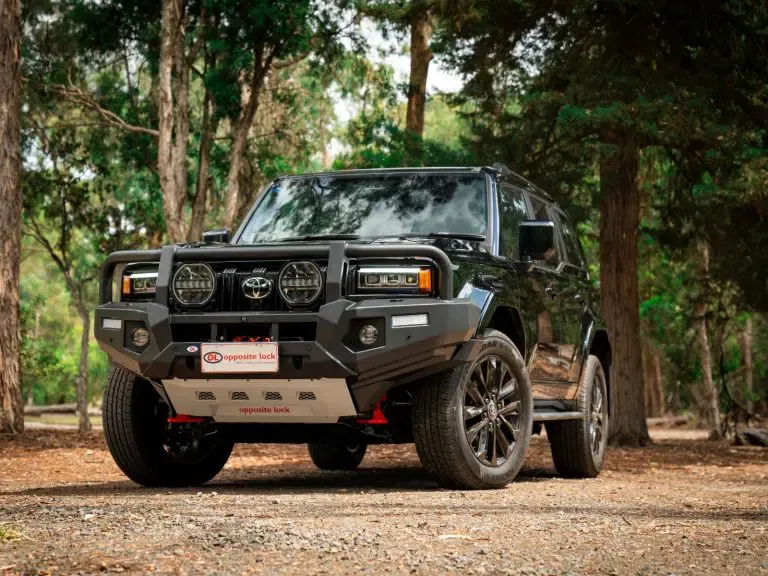 The Opposite Lock bull bar to suit Toyota Land Cruiser Prado delivers premium protection. Designed to integrate seamlessly with all tech pack features, it offers a low winch mount for optimal recovery and rated recovery points. Finished with durable e-coating and powder coating for maximum corrosion resistance, this bull bar is built to meet high safety and performance standards.